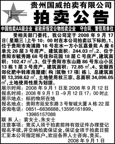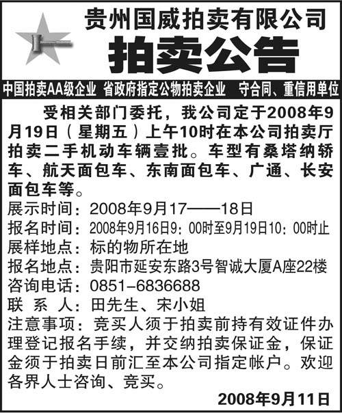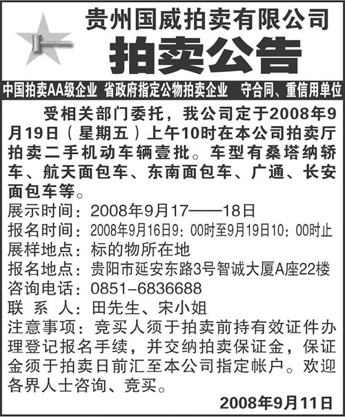 版權(quán)所有 ? 2020 貴州國(guó)威拍賣(mài)有限公司 保留所有權(quán)利 技術(shù)支持:興思匯科技 Powered by www.hzglvshi.com