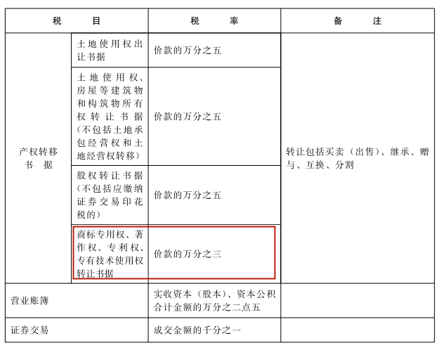 二是具有產(chǎn)權(quán)轉(zhuǎn)移書據(jù)性質(zhì)的拍賣成交確認(rèn)書。主要對象是不動產(chǎn)和知識產(chǎn)權(quán)拍賣業(yè)務(wù),包括常見的土地使用權(quán)、房地產(chǎn)、股權(quán)(除證券類外)及知識產(chǎn)權(quán)等拍賣種類。其中,知識產(chǎn)權(quán)(商標(biāo)專用權(quán)、著作權(quán)、專利權(quán)、專有技術(shù)使用權(quán)拍賣)拍賣的印花稅稅率為0.3‰,其他土地使用權(quán)、房地產(chǎn)、股權(quán)的印花稅率都是0.5‰。