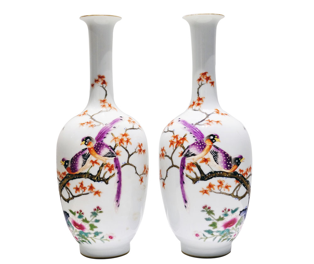 清雍正花鳥粉彩賞瓶